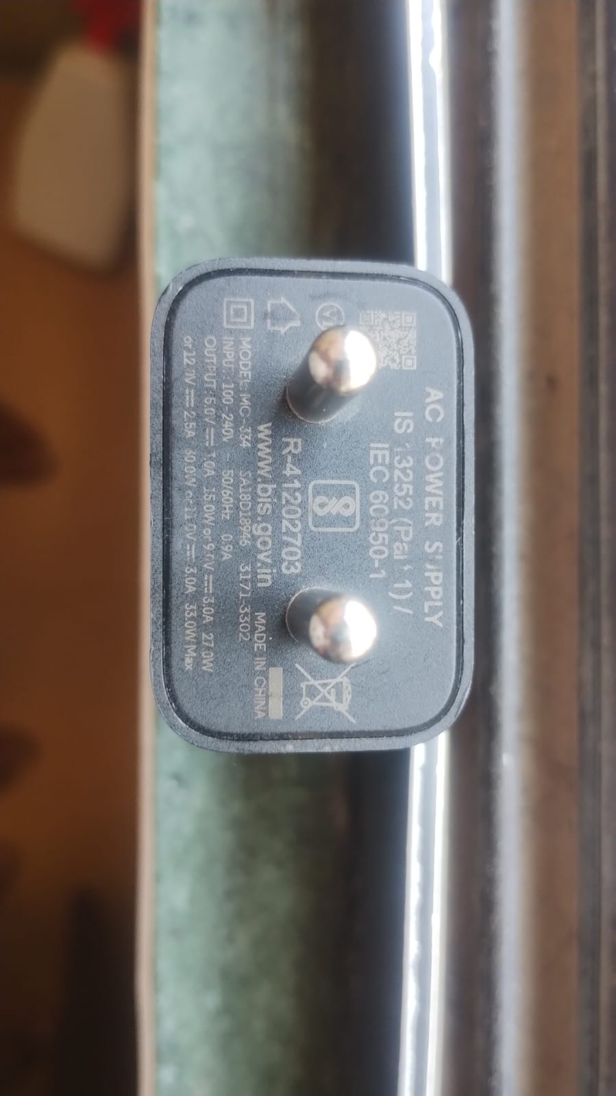 My Charger Info: The adapter I’m using is a Motorola TurboPower 33W Charger (Model: MC-334)